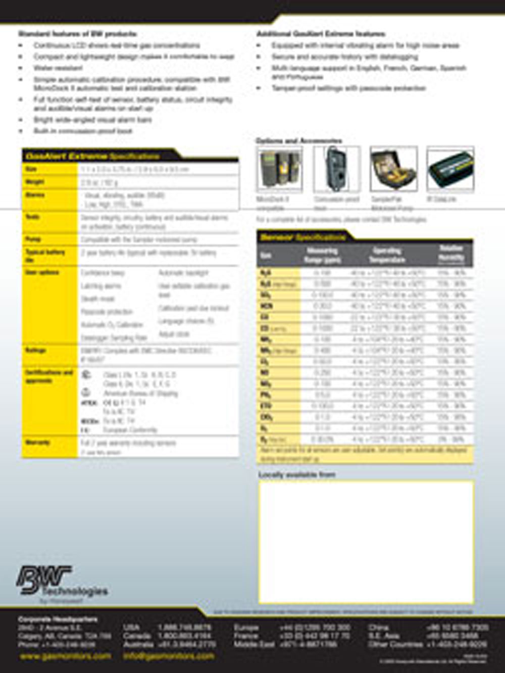 GasAlert Extreme, ini adalah alat Pendeteksi kebocoran gas di area kerja yang mudah meledak, Jenis gas ini merupakan Single Gas dan tiap unit hanya di peruntukan untuk satu Jenis gas saja yaitu : H2S, CO, O2, SO2, NH3, PH3, CI2, CIO2, NO, NO2, HCN, ETO dan O3 dan produk ini dikalibrasi selama 6 bulan sekali dan sudah bersertifikat resmi dari bw technologies by honeywell, produk ini mempunyai garansi 2 tahun, Selain itu kami juga menerima service dan kalibrasi BW gas detector.