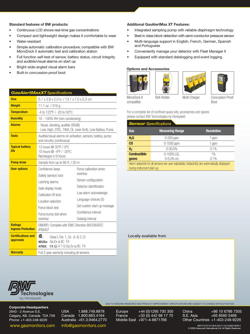GasAlert Max XT II, P/N: XT-XWHM-Y-OE,  Ini adalah alat untuk pendeteksi kebocoran Gas di area Kerja yang mudah meledak, Jenis Gas ini Multi Gas detector yang bisa mendeteksi hingga 4 Gas sekaligus dalam satu alat Yaitu : H2S,CO,O2, % LEL.dan Memiliki Operasi sederhana dengan Pompa Smartsample,  sangat sederhana, sehingga nyaman dipakai, dan Produk ini dikalibrasi selama 6 bulan sekali dan sudah Ber Certificate Resmi dari BW Technologies by Honeywell, Produk ini mempunyai Garansi 2 Tahun, Selain itu kami juga menerima Service dan kalibrasi BW gas detector.